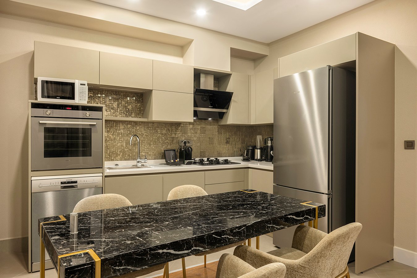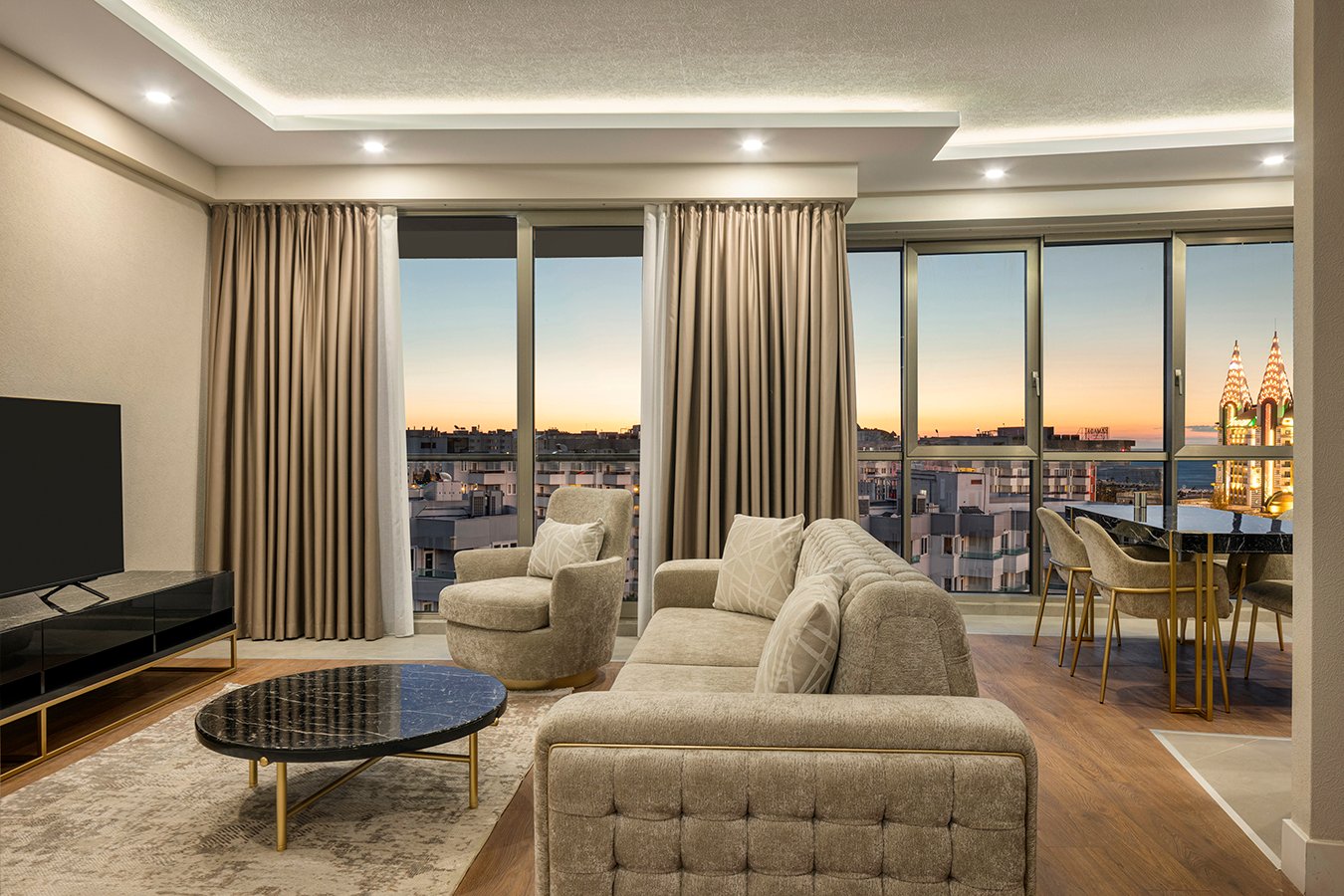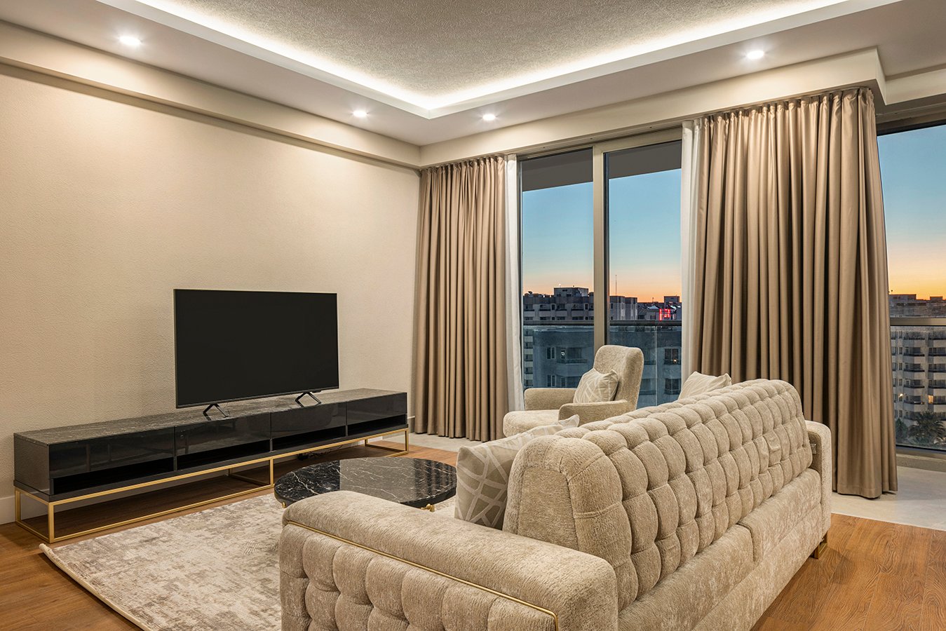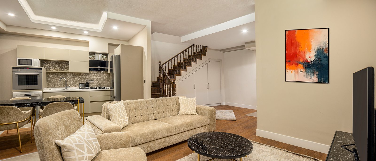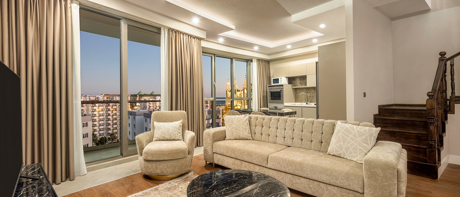 Created for guests who value privacy and elevated comfort, these duplex suites combine refined design with functional living. Ideal for small families and groups of friends, these thoughtfully planned residences accommodate up to 3 adults + 1 child or 2 adults + 2 children. The layout includes one bedroom, an expansive living space, and a private terrace where you can unwind in your own exclusive setting.